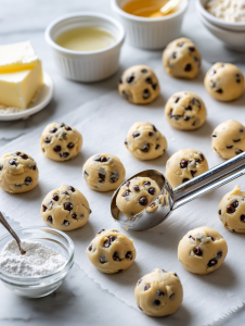 6. Scoop tablespoon-sized portions of dough, roll them into smooth spheres, and place them onto the prepared baking sheets, spacing about 2 inches apart to allow for spreading.