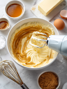 - In a large bowl, use an electric mixer or whisk to cream together the softened butter and brown sugar until the mixture is light and fluffy, about 3 minutes. Your kitchen will fill with a warm, caramel aroma.