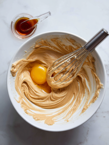 - Add the large egg and vanilla extract to the bowl, mixing until well incorporated. The mixture should look smooth and slightly glossy.