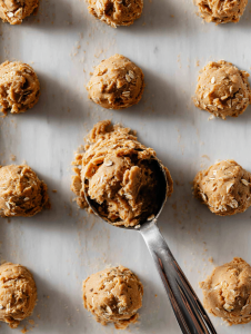 - Scoop tablespoon-sized portions of dough onto the prepared baking sheet, spacing them about 2 inches apart to allow room for spreading.