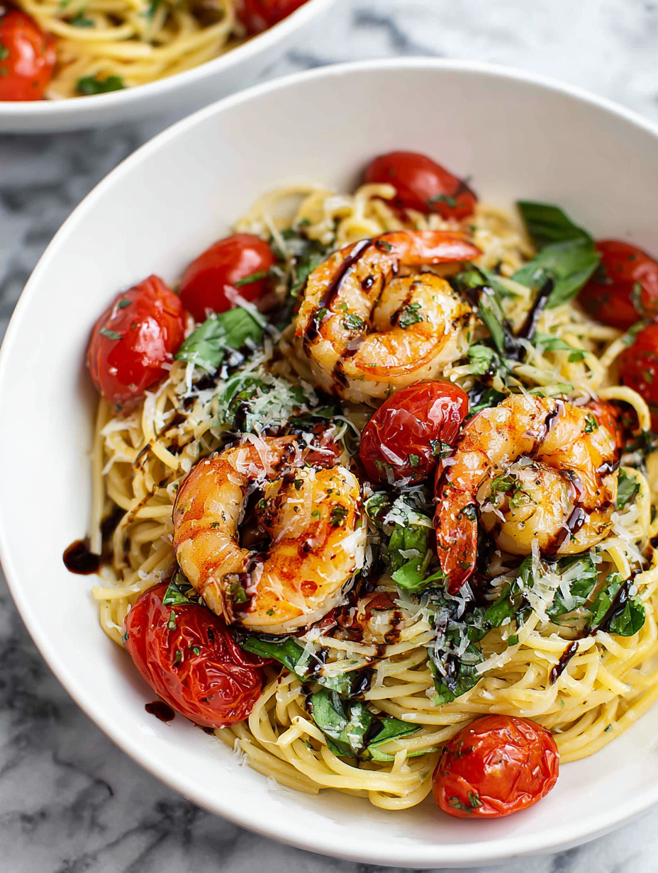 - Finish by garnishing with lemon zest or chopped herbs if desired. Serve immediately on warm plates, enjoying the fragrant, saucy pasta with tender shrimp.