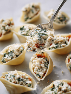 - Using a spoon or piping bag, carefully stuff each shell with the cheese mixture, pressing gently to fill completely.